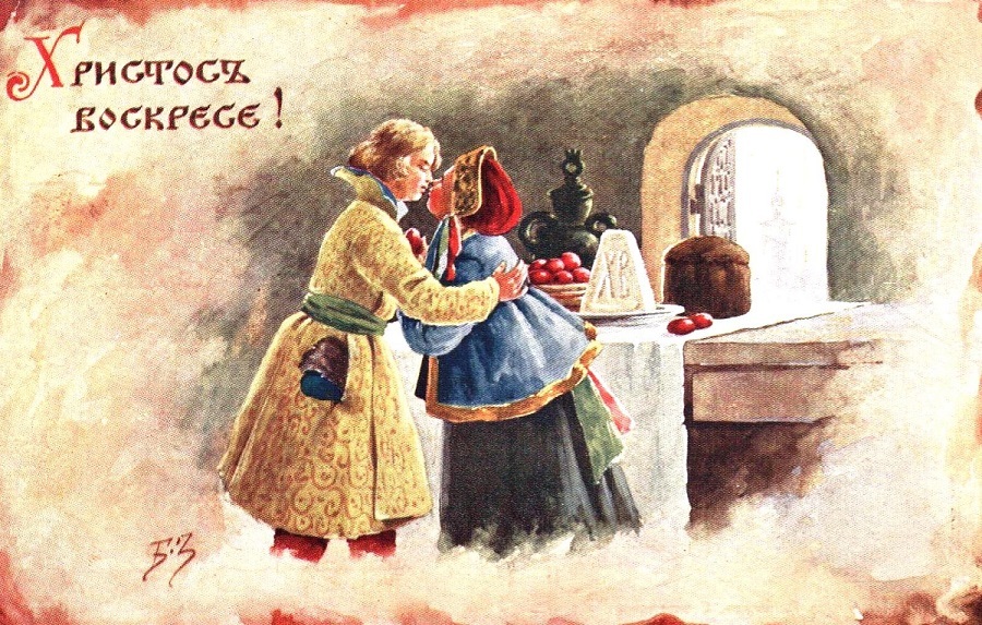 Официальная христианская версия — во времена римского владычества было принято, посещая императора, приносить ему дар. И когда бедная ученица Христа, святая Мария Магдалина пришла в Рим к императору Тиверию с проповедью веры, то подарила ему простое куриное яйцо. Тиверий не поверил в рассказ Марии о Воскресении Христа и воскликнул: «Как может кто-то воскреснуть из мертвых? Это так же невозможно, как если бы это яйцо вдруг стало красным». Тут же на глазах императора свершилось чудо – яйцо стало красным, свидетельствуя истинность христианской веры. И Тиверий воскликнул: «Воистину воскрес!».